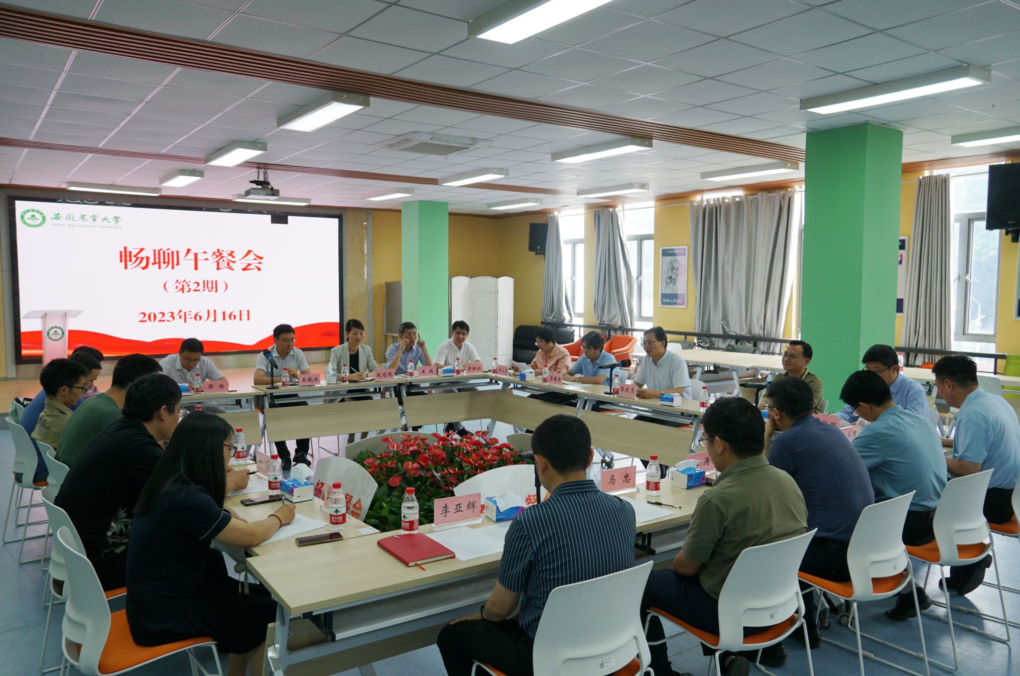 张庆亮在交流中对人才在学校各项事业发展中作出的重大贡献表示感谢。他指出,人才是第一资源,是创新驱动发展的关键要素,人才工作是学校事业向好发展的重要保障,学校高质量发展离不开人才队伍的强力支撑。他表示,学校党委高度重视人才工作,通过“畅聊午餐会”可以了解掌握人才的所思所想、所需所盼,可以听声音、谈问题、讲政策,积极回应人才关切,优化人才发展环境,激发人才发展活力。他强调,学校将全面深入贯彻落实党的二十大精神,深化人才工作体制机制改革创新,推进治理体系和治理能力现代化,提升服务能力与水平,打造和谐健康发展生态,让人才安心从事科研,静心开展教学。他希望,各位人才要坚持以强农兴农为己任,聚焦国家和安徽省重大发展战略、重点发展领域、重大社会需求开展研究,努力建设大平台、做出大项目、产出大成果、成为大学者,不断凝聚发展合力,助推安徽“三农”工作和学校高质量发展。